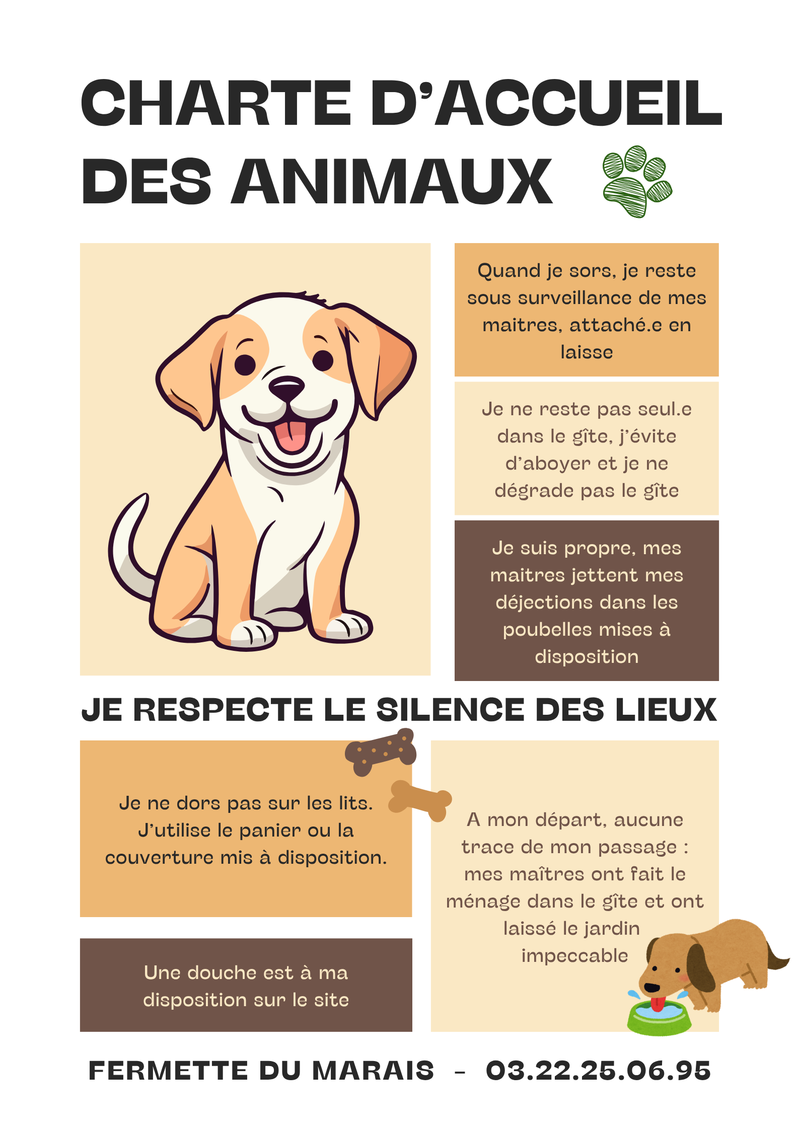 Nos amis les animaux sont les bienvenus, prenez le temps de lire notre charte.